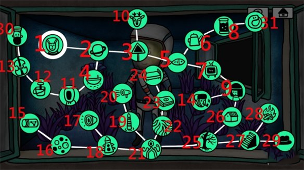 2、首先随着宇航员来到房间里,开始执行第一步骤:离开小屋、前往迷失岛的外面。
