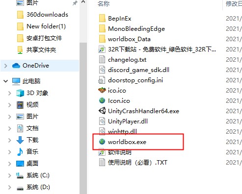 1、在本站下载并解压worldbox电脑版,双击“worldbox.exe”文件打开游戏;