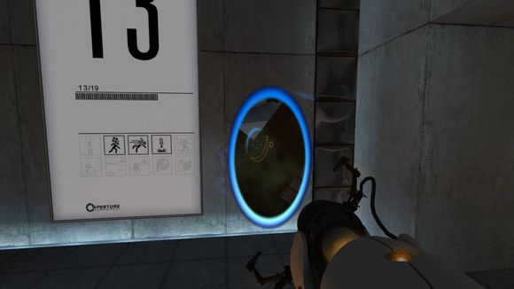 实验室12:开门到另一房间,然后再开门让能量球进入装置。然后回到前面的走廊,可以发现通往上一层的门已经开了, 利用重力和传送门跳到上面,再开门到另一房间,这时你可以上电梯,也可以到另一房间里望到G-Man。