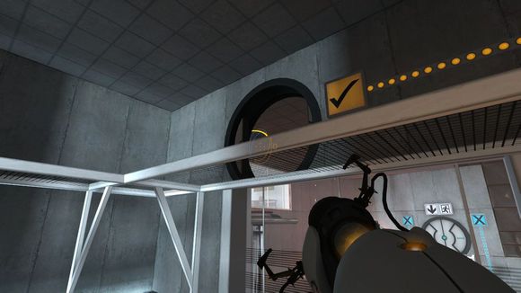 实验室7:打开开关后,在最靠近天花板的墙上开一个门,在地下开另一个,要抓住时机跳过大部分离子墙,趁离子墙还在准备时就走过它。