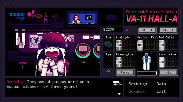 赛博朋克酒保行动汉化版是一款来自委内瑞拉的独特文字冒险游戏,玩家将在这个未来的城市中扮演一名酒吧的酒保,为来到酒吧的所有客人调制他们喜欢的酒。与我们平常玩的文字冒险游戏不同,游戏已经不在是让玩家选择系统规定的选择来体验剧情了,开发商将这个选择巧妙的融入到了酒的制作当中,虽然这个调酒的过程是游戏的主要玩法,但是根据客人所给出的条件不同,玩家所提供的酒也会改变事情的发展,主要就是通过酒吧客人的对话,来了解整个游戏的剧情。赛博朋克酒保行动汉化版的画面风格虽然采用的是传统的像素风格,但是在人设和细节上面却是做得相当丰富,通过客人的对话中也可以了解到一个个不同的故事。游戏最大的难点就是调酒的环节了,每个客人的喝酒习惯都是有所不同的,除了一些只喝啤酒的常客之外,还会出现一些拥有独特要求的顾客,后者的调酒是需要玩家对游戏中的酒文化有一定的了解才可以轻松过关,可以说酒就是玩家体验游戏剧情的关键。赛博朋克酒保行动汉化版没有什么主线任务,玩家只要每月维持交付的房租就可以一直进行游戏,游戏币不够交房租就是游戏结束的时候。