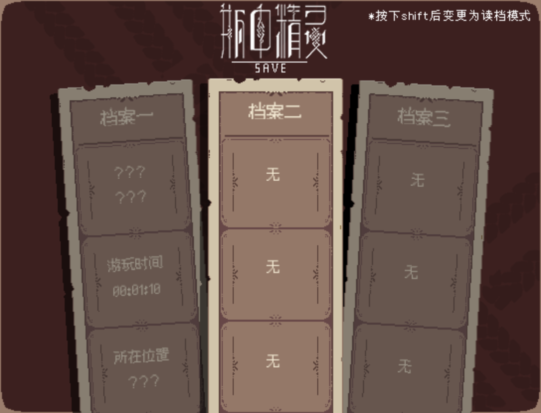 8、点击“Esc”键或者“X”键,这样就可以进入存档界面,而读档,点击“shift”键位就可以进入读档界面了。详细可以看屏幕上方的显示,是否为“SAVE”。