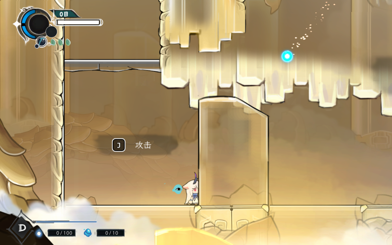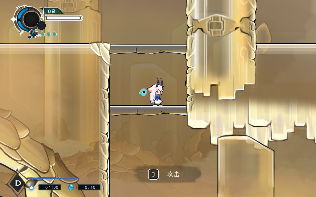 1、游戏开始,通过角色移动通过“A”,“D”键移动,“J”键攻击,“空格”跳跃。