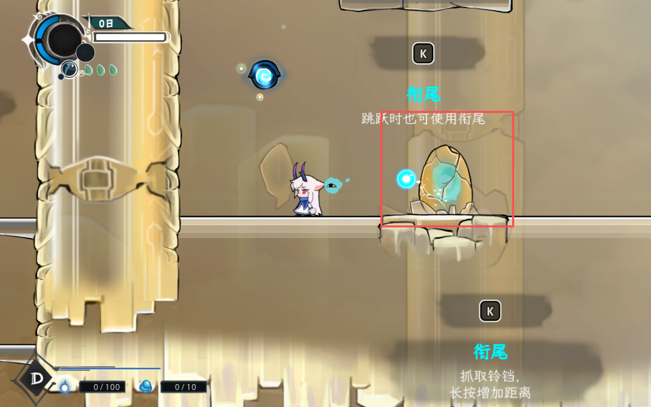 3、“衔尾”是游戏中的一个技巧,类似绳索,可以勾取特定的物品,从而跨越障碍。