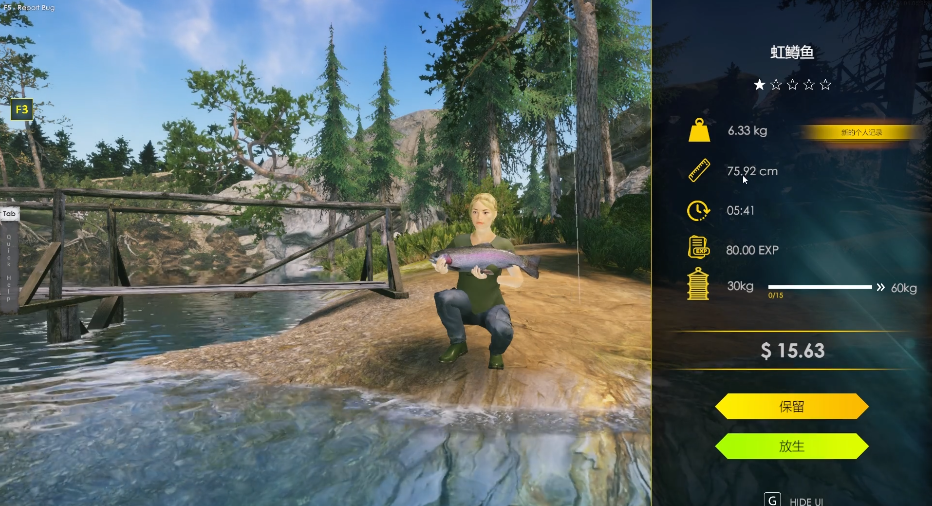 也很难不提及各种鱼的建模。就外观而言,已被极其逼真地再现。然而,这还不是全部。每条鱼都以不同的方式保护自己免受捕获。将300克的小鱼从水中拉出没什么大不了,但和更大更重的巨无霸激战就是另一回事了。挑战越大,就越依赖细节:选择合适的钓具、调整刹车系统或控制鱼线张力。