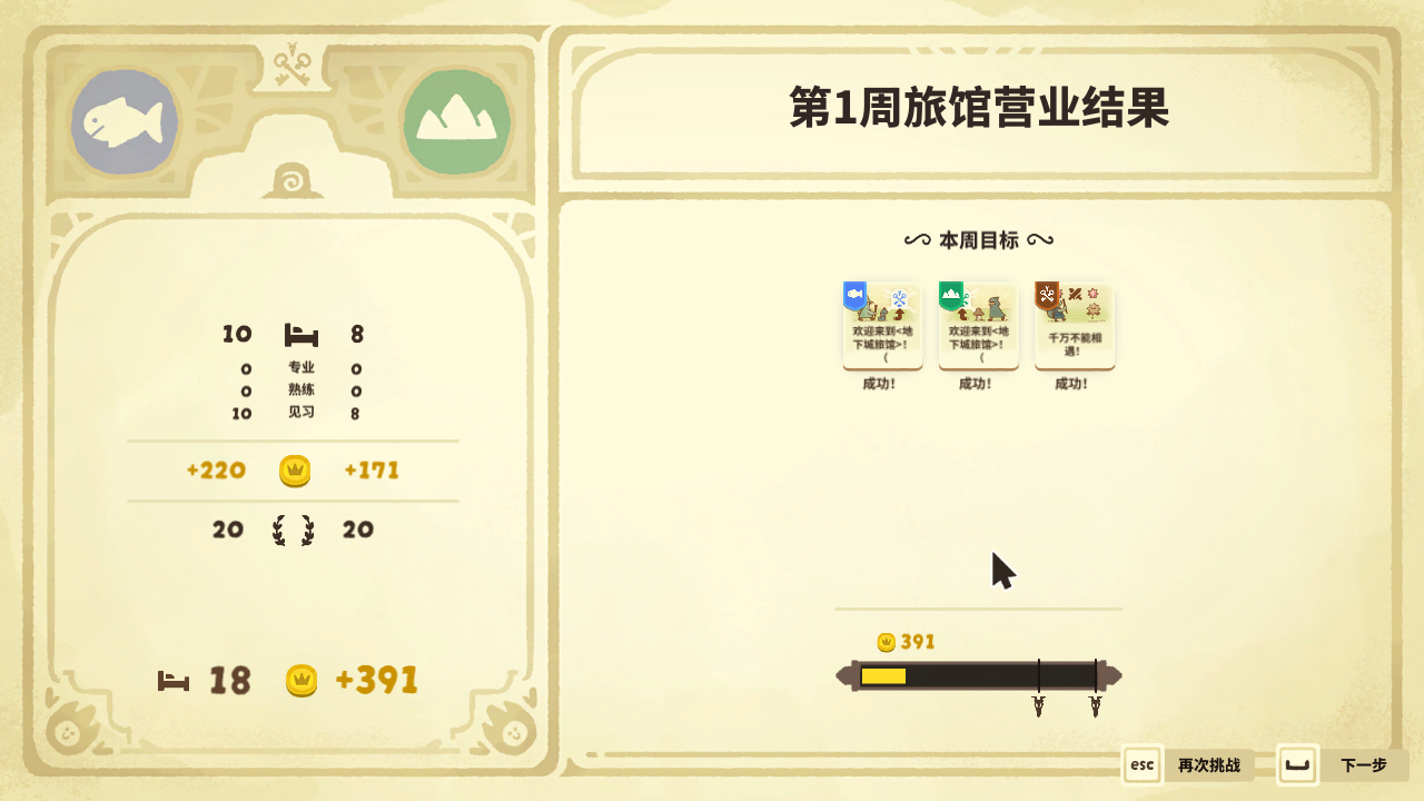 1、游戏中随着旅馆经营时间的延长,收益和困难也会增加,所以玩家前期需要积蓄足够的金钱。