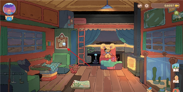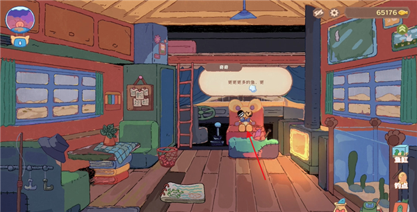 1、玩家进入猫猫钓游记游戏中是有一个属于自己的房车的,点击图中的娃娃,它是商店可以在里面购买物品;