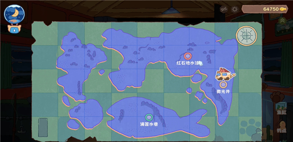 4、点击房车的地图,如下位置即可选择钓点;