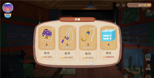 8、在房车中点击这里,可以升级我的钓具工具;