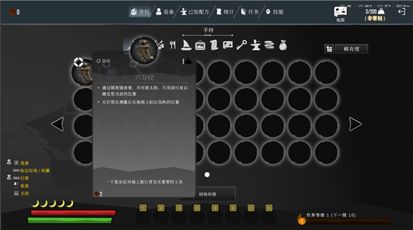 六分仪按右键对准太阳辨别方位后就可以在地图上显示自己的位置,注意,只有在用六分仪确认过自己位置后地图上的红色标点才会更新。