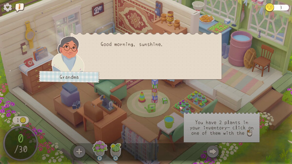 游戏包含一些益智元素,玩家需要通过整理物品、摆放灯具和加湿器等互动元素,为植物腾出空间并提升房间的舒适度。