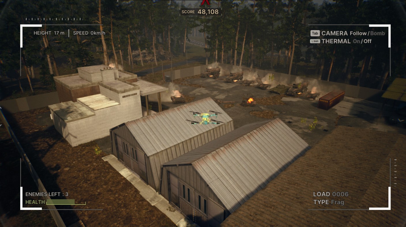 《死神天降》(Death From Above)游戏中,玩家将在游戏中操控不同类型的无人机,执行多样化的任务,如清除地雷、打击敌人、切断补给等。游戏提供丰富的动态玩法,允许玩家在飞行员、四轴无人机和FPV无人机之间切换,同时探索充满现实世界彩蛋的沙盒地图。