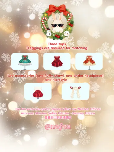 《星露谷物语》圣诞服装系列MOD,圣诞快乐!为你的农民添置了一些节日圣诞服装!3件独特的节日上衣,让你变换色彩搭配,匹配各种节日氛围!感兴趣的小伙伴快来3DM下载吧!
