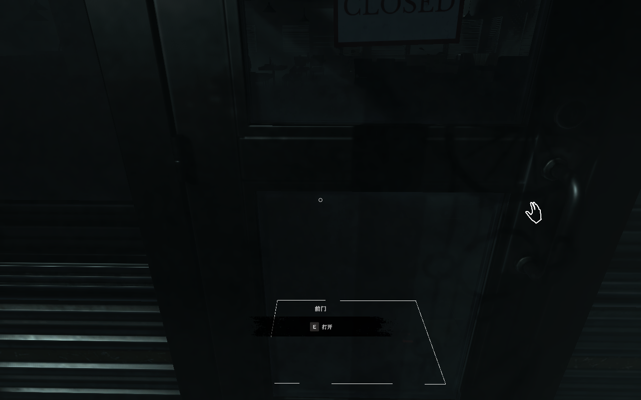 3、点击“E”键可以互动开门,当然,餐馆正大门是无法打开的,玩家需要面对大门,向左环绕房子。