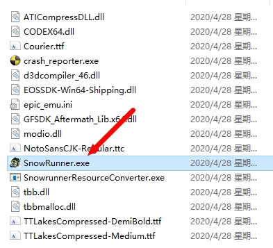 2、在XSnowRunneren_usSourcesBin目录下,双击SnowRunner.exe启动游戏;、