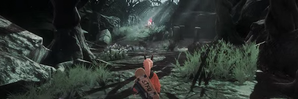 2、游戏开始,注意脚下的脚印,玩家只需要沿着脚步前行即可,移动加“Shift”键可以奔跑,空格可以翻滚闪避。