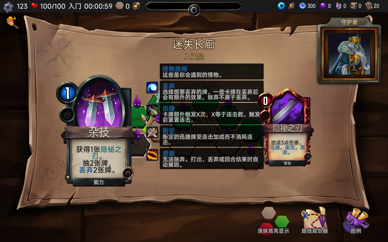 收集强大的虚空石镶嵌到卡牌上,赋予卡牌额外的能力!除弃本回合用不到的卡牌获得能量,为丝滑连招提供动力!敌人在自己的回合发动攻击时,你的威胁值会增加。在你的下一回合结束时会结算之前积累的威胁,对你的生命值造成等于总威胁值的伤害,打出格挡牌可以降低威胁值。