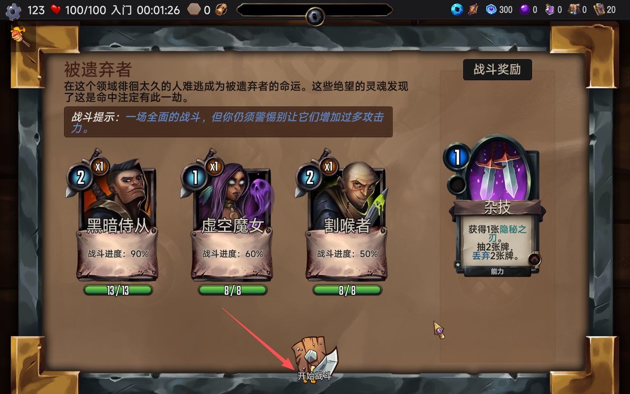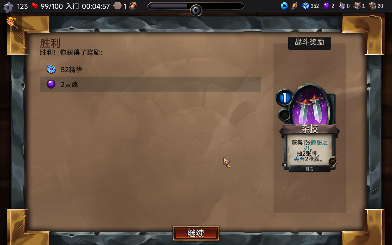 10、获胜后就可以获取新的卡牌,能力卡牌“杂技”。