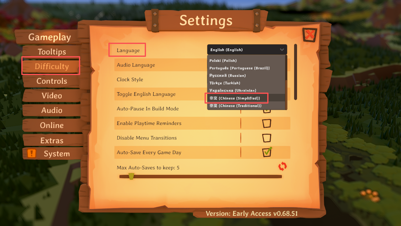 2、随后点击“Difficult”,选择“Language”,再选择“中文”即可。