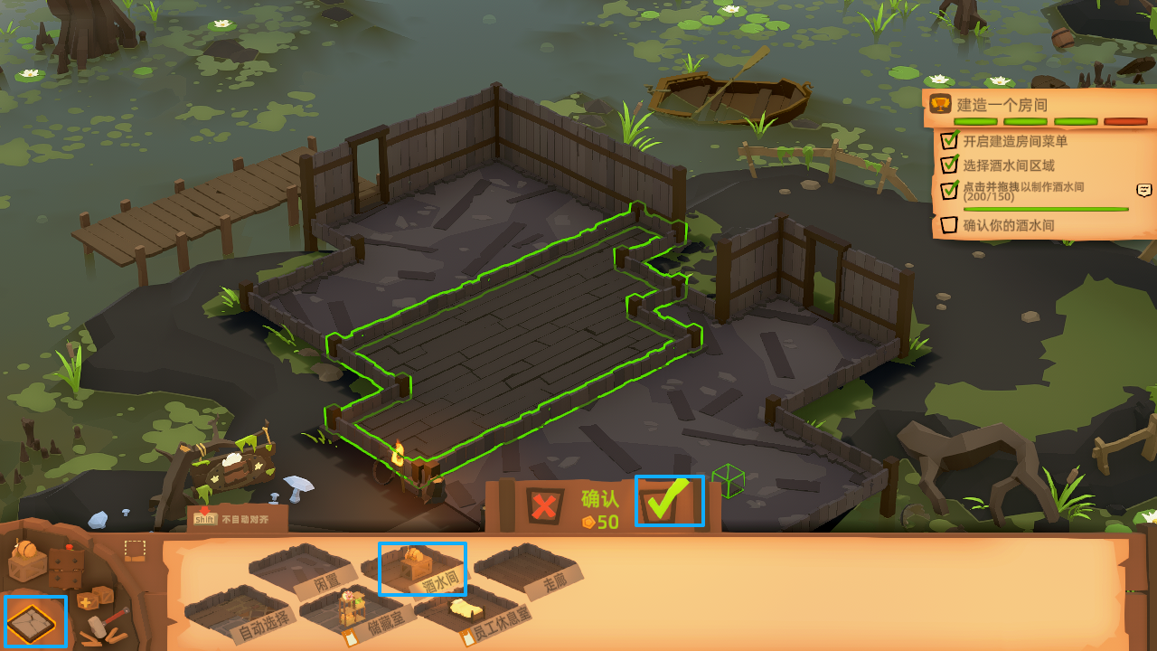 6、随后玩家可以放置“龙头”,用于售卖酒水,放置过程中,玩就可以查看屏幕下方的操作进行。