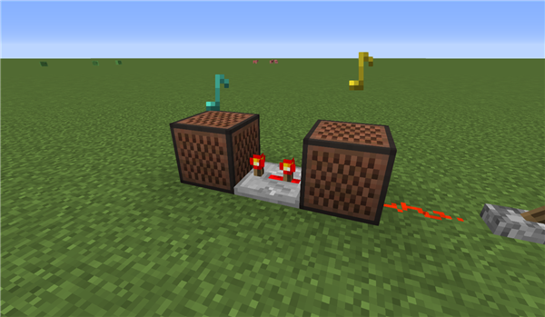最后,在红石音乐的制作中,往往还需要加上和弦,表现形式为多个音符盒随同一个信号响起,听上去很容易,但这部分内容其实相对复杂,因此攻略君会放在以后再讲哦。