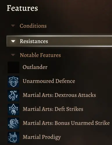 1、修复了你选择背景(侍僧、贤者、异乡人、贵族等)在使用手柄查看角色显著特征时,图标不会显示为黑色方块。