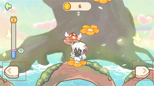 2、顶部显示金币,用左右【箭头按钮】操控角色移动到【花朵】区域,推进游戏进度。