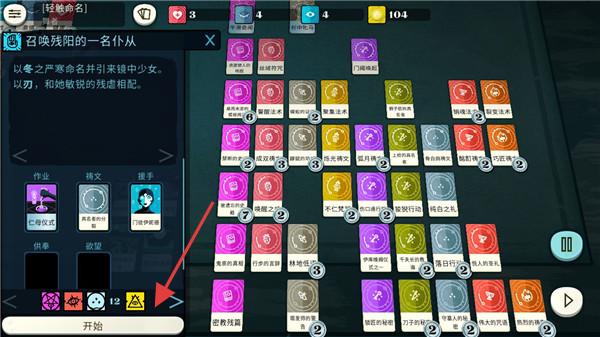 2、根据任务提示(如召唤仆从),点击【开始】,运用卡牌推进剧情。