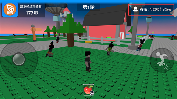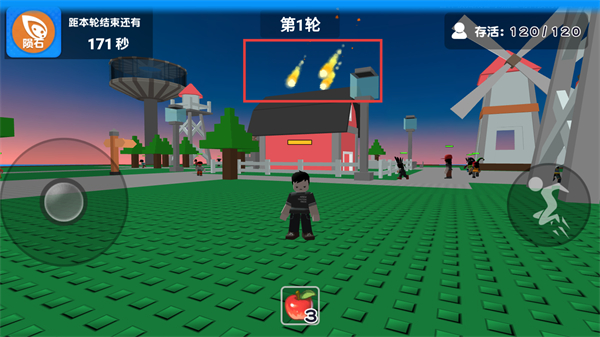 1、在【陨石】灾难轮次中,留意界面显示的【距本轮结束还有-177秒】,同时可使用下方【苹果】道具。