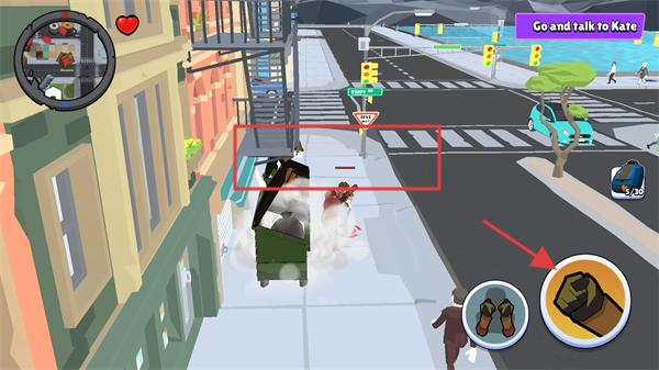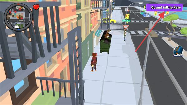 1、进入关卡后,目标为“GoandtalktoKate”,跟随箭头指引向街道方向移动。