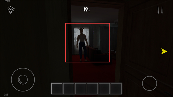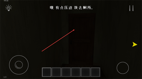 2、在昏暗场景中跟随箭头指引,向目标房门前进。