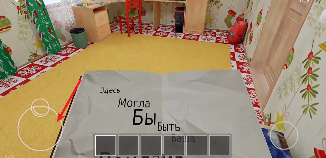 1、在房间场景中,留意地上展开的纸张信息,同时利用左下角操控按钮移动角色探索周边。