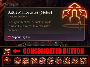 1、将所有战斗大师的动作整合到专门用于近战和远程攻击的按钮中,节省宝贵的快捷栏空间而不影响功能。