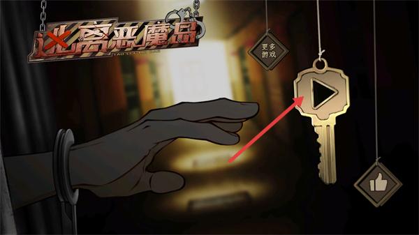 1、点击带有【三角形】标识的钥匙图标,进入游戏关卡,开启【逃离恶魔岛】的解谜玩法。