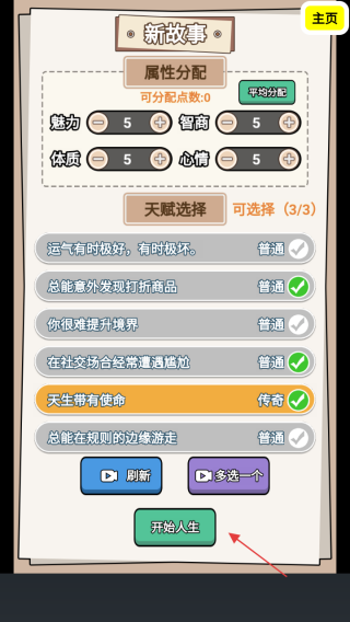 1、完成属性分配与天赋选择后,点击【开始人生】,开启角色成长之旅。