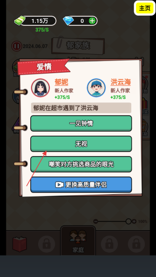 4、遇爱情事件选【无视】,前期专注个人发展,后续再规划情感线推进。