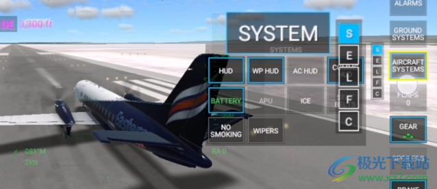 2、第二步打开信号灯,在右边的飞机面板中,按住下滑到L,打开这边的几个信号灯,都开也不影响飞行;