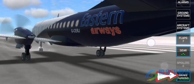 3、第三步起飞,首先确保右下角的手刹是亮的,接着把机翼模式选到7,长按右边的flaps下滑;