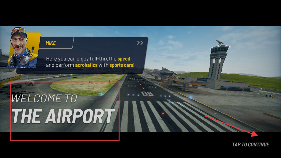 4、到达新场景如机场时,点击“TAPTOCONTINUE”继续游戏。