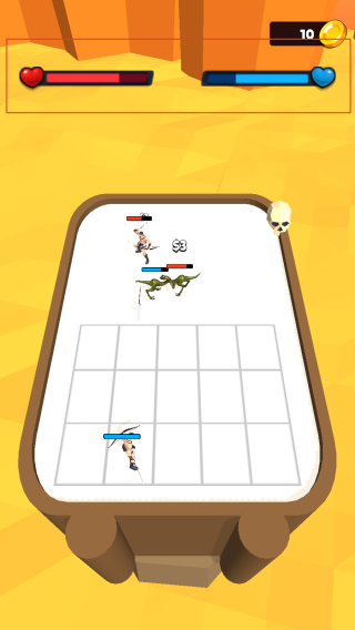 1、进入游戏关卡,观察屏幕上的角色布局和血条,利用屏幕上的交互元素控制角色进行战斗,击败敌方角色。