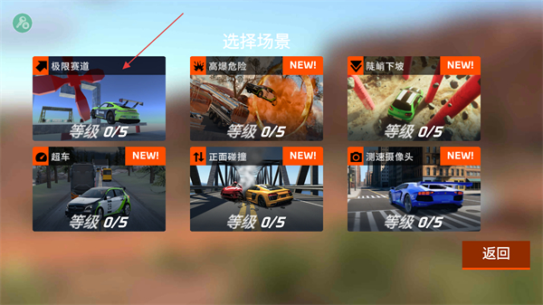 1、在选择场景界面中,点击已解锁的场景模块,进入对应关卡的驾驶场景,准备开启该赛道的驾驶挑战。