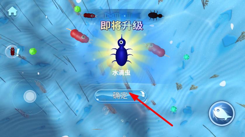 1、进入游戏后选择初始微生物角色,在新手引导中学习移动、瞄准和吞噬的基础操作,熟悉周围环境中可吞噬的弱小生物。