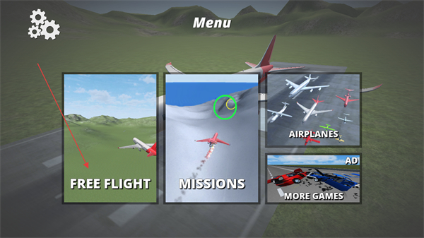 1、在主菜单选择【FREE-FLIGHT】模式,进入自由飞行的玩法场景,可自主体验飞机驾驶。