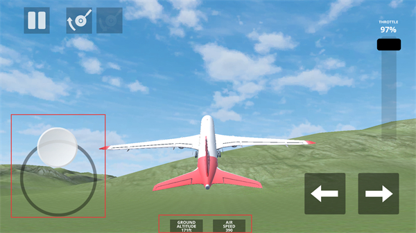 4、通过左侧操控按钮控制飞机姿态,完成飞行操作。