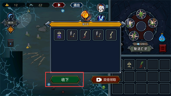 1、在界面点击【收下】按钮,获取身体部位类道具,用于后续组装或强化亡灵。