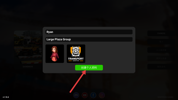 2、在弹出的界面中输入名称与公司名后,点击【创建个人资料】按钮完成存档创建。