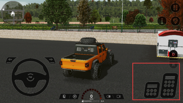 4、点击右侧汽车踏板,可操控车辆前进、刹车。