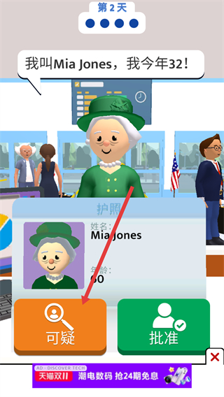 1、点击界面中的点击以开始按钮,进入护照检查的关卡。