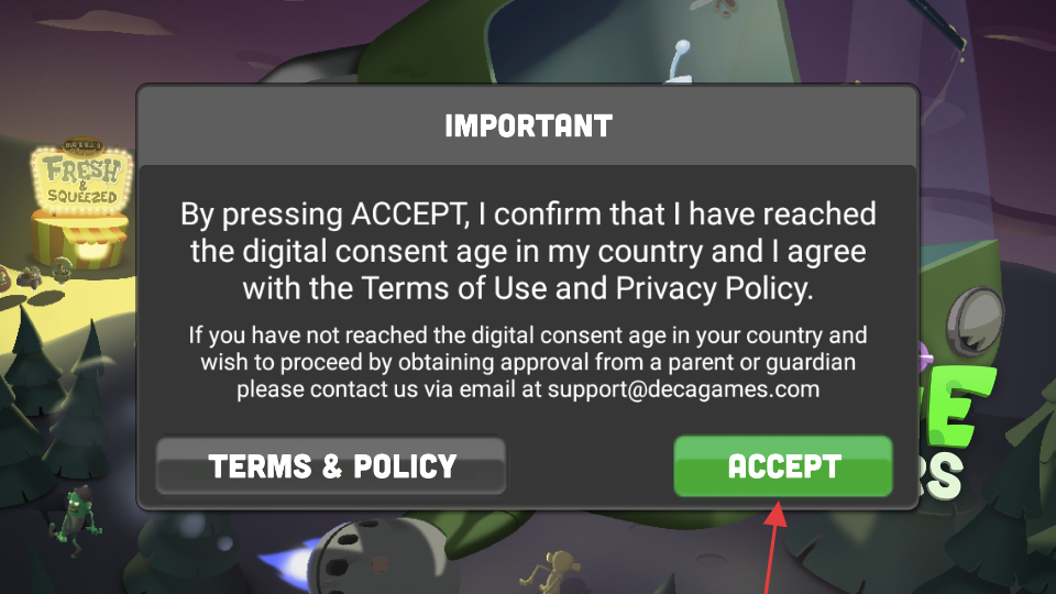 1、首次进入点【ACCEPT】,确认符合数字同意年龄并同意条款,进入游戏。
