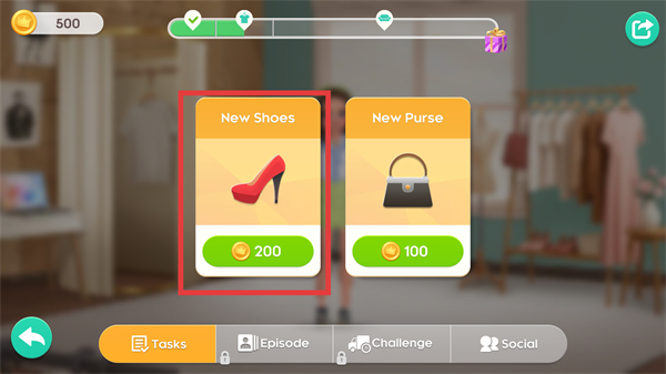 3、花费200金币购买【NewShoes】,为角色添置红色高跟鞋,丰富下装搭配选择。